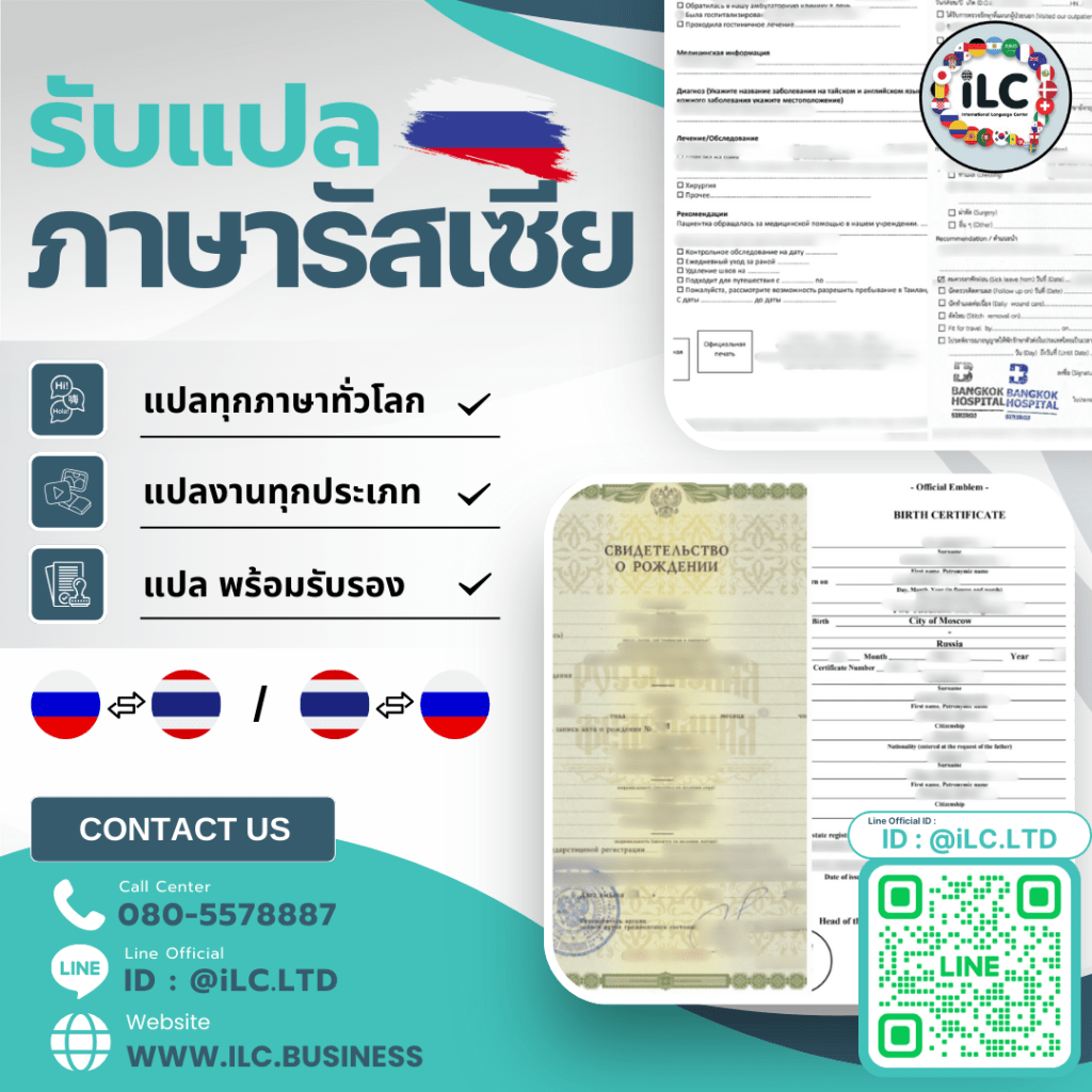 อย่าปล่อยให้กำแพงทางภาษามาขวางกั้นความสำเร็จของคุณ เลือก iLC ผู้เชี่ยวชาญด้านการแปลและรับรองเอกสารภาษารัสเซีย แล้วคุณจะไม่ผิดหวัง!
