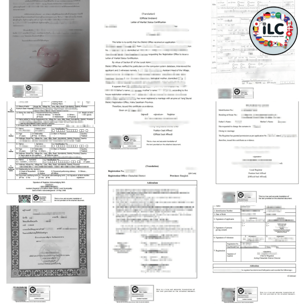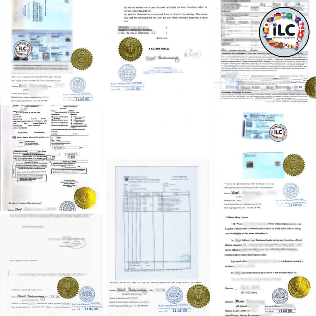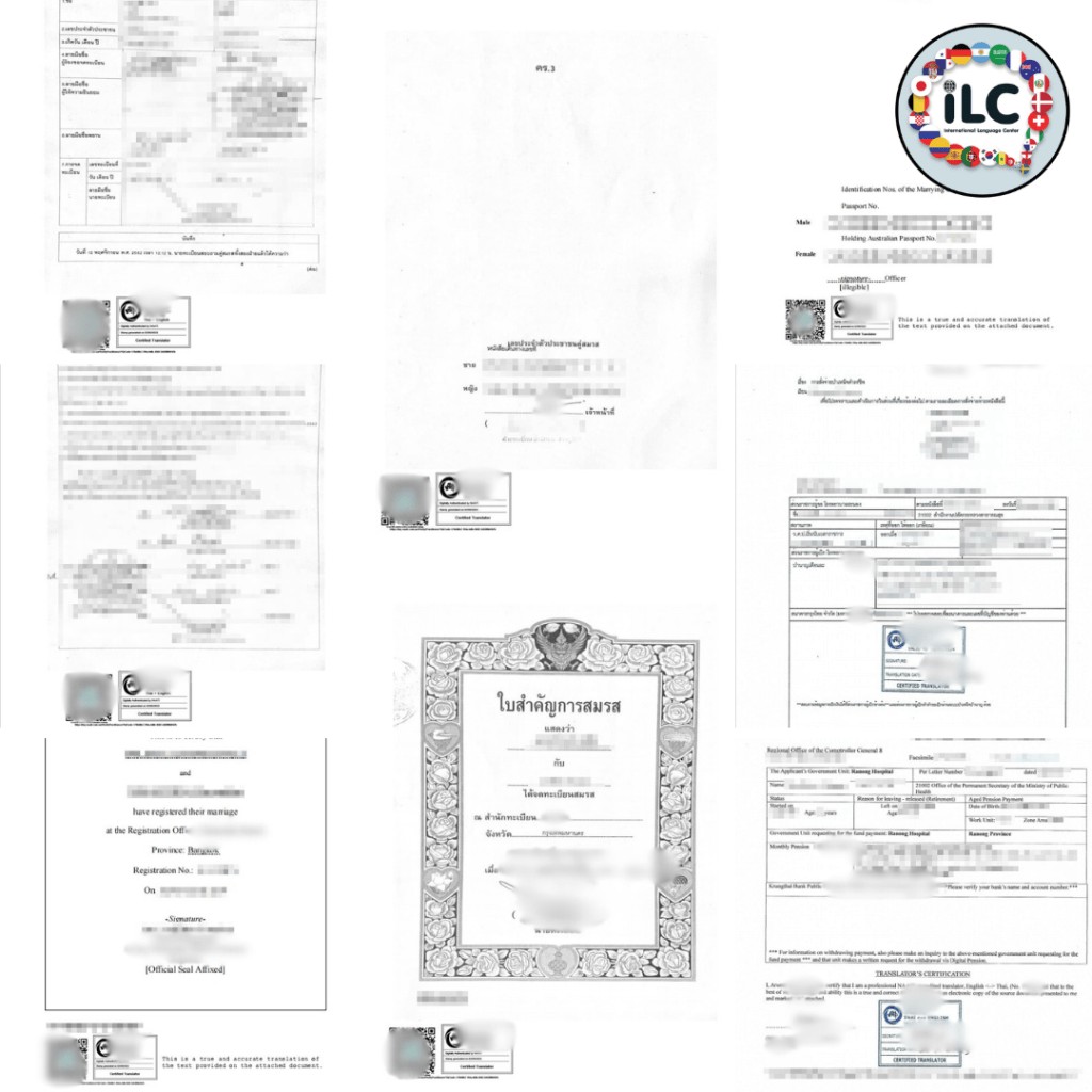 iLC ไม่เพียงแค่ให้บริการแปลภาษาญี่ปุ่นเท่านั้น แต่เรายังให้บริการแปลภาษาอื่นๆ อีกกว่า 196 ภาษาทั่วโลก พร้อมบริการรับรองเอกสารแบบครบวงจร ไม่ว่าจะเป็นการรับรองคำแปลโดย Translingo, การรับรองเอกสารโดยสถานทูต กงสุล, การรับรองเอกสารโดยนักแปล NAATI, และการรับรองเอกสารโดยทนายความ Notary Public เรายังมีบริการอื่นๆ ที่เกี่ยวข้อง เช่น การแปลและรับรองเอกสารสำหรับยื่นวีซ่าญี่ปุ่น การเตรียมเอกสารสำหรับการจดทะเบียนสมรสกับชาวญี่ปุ่น และการตรวจประวัติอาชญากรรม